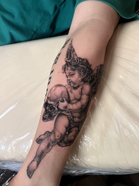 前回彫らせていただきましたレタリングの上に 犬のトライバル彫らせていただきました! ありがとうございます(^ ^)