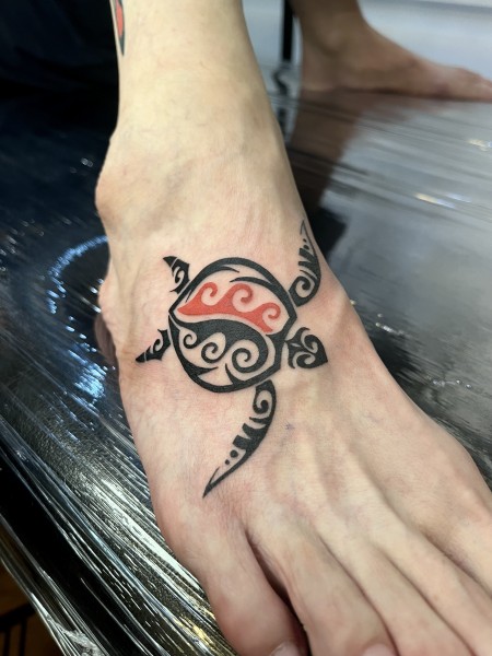 こんにちは!アムロです! 足の甲にtribal tattooです。 痛い場所でしたが最後まで耐えぬいていただきました〜 ありがとございます(^^)