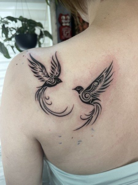 こんにちは! アムロです。 肩にone point tribal tattooです!