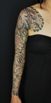 Ryu tattoo works Complete!  刺青 大蛇と牡丹 墨