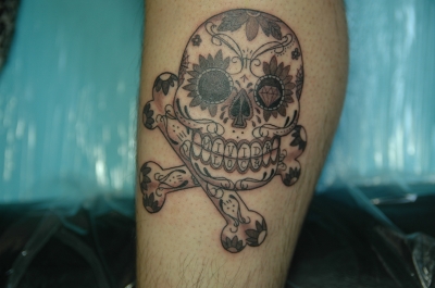 こんばんわ!!SATOSHIです!!待ちにまったシュガースカルのTATTOOです★個人的にやっぱこういうロックなデザインは好きですねぇ~かっこいいっす!MI VIDA LOCAまでいっちゃいましたからね~チョウかっこよす★でわでわ