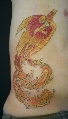 こんにちは。RYUです。今日の作品はフェニックスのタトゥーです。フェニックスの尾には、お客さんの子供の名前が入っているんですよ。素敵ですよね。