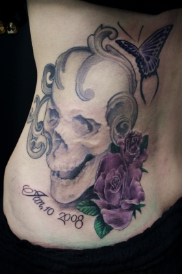 こんにちわ~の★SATOSHIです!今日のTATTOO紹介はスカルです!!!リアルをテーマにマッカッカなダークなスカルです!お~こわ。