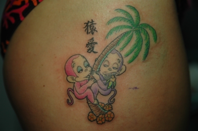 今度は猿のデザインで~す★可愛くアニメっぽくしてほしいとのことでカップルのお猿さんを入れました~!かなり気に入ってくれたみたいです!!入れた後にも関わらずテンションがかなり高かったです!また来て下さいね~★