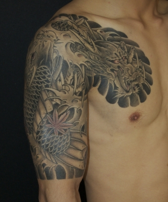 tattoo by Ryuichiro刺青 鯉と紅葉 五分